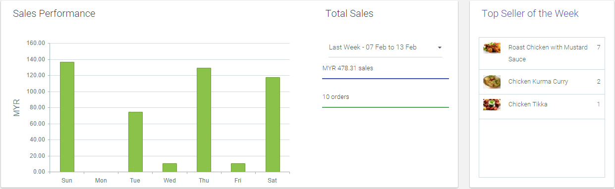 This shows the current week sales and total orders that you have received. It helps you with business decisions making such as when additional staffing is needed or predict production or stocking trends. You preview the weekly data from the current week until last month.